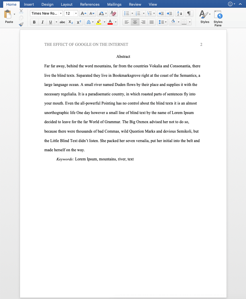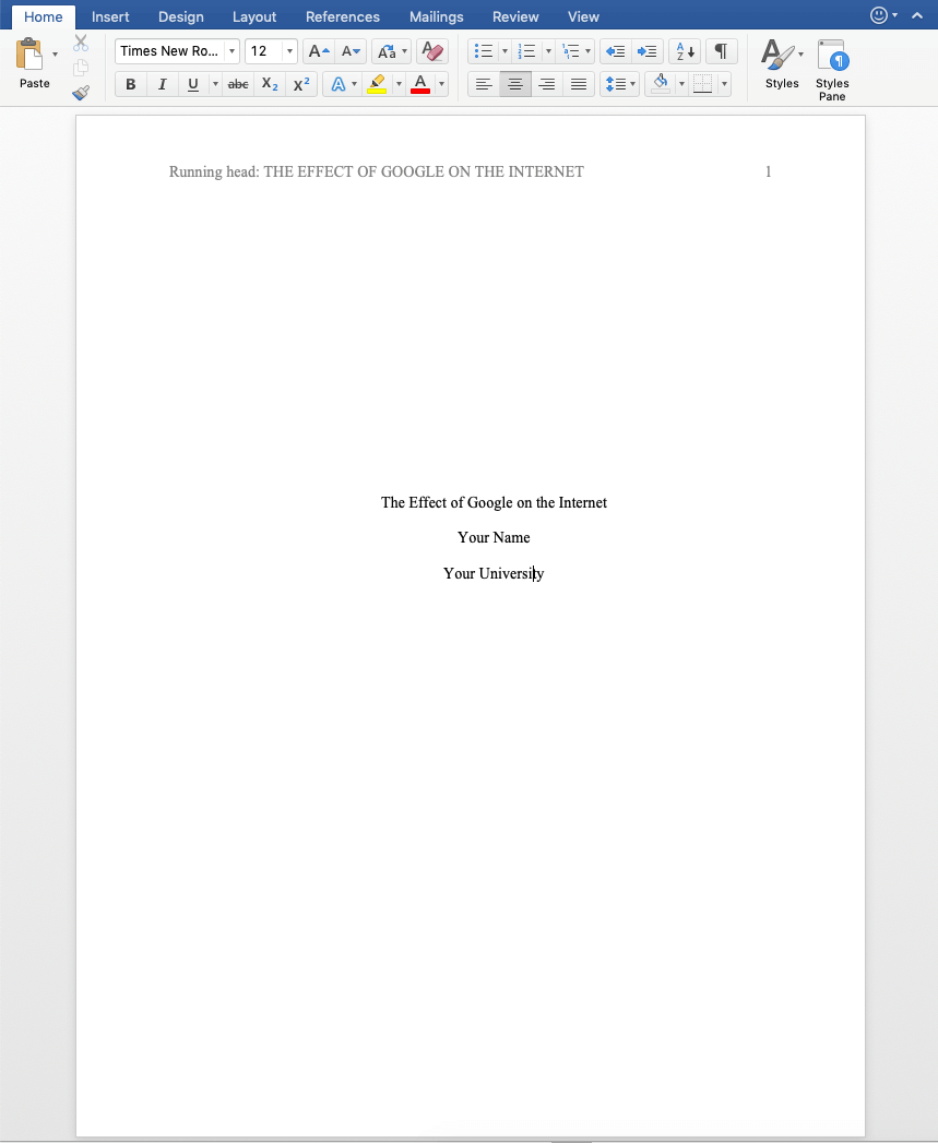 - Check “Different First Page” to only show the words “running head:” on the first page.